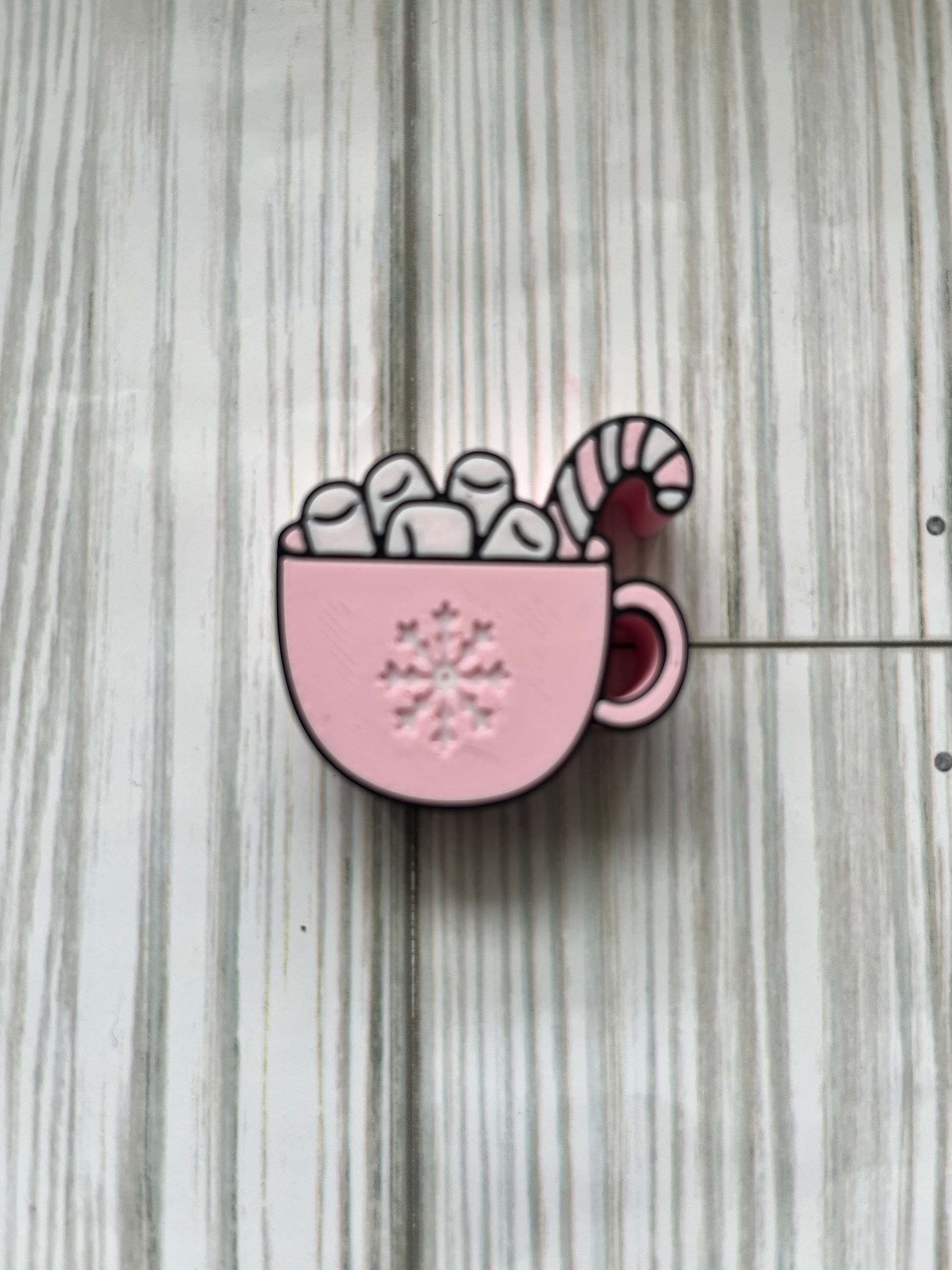 Designed to look like an adorable cup of pink hot cocoa, this topper features soft pastel tones and cute details that bring all the cozy vibes. Made to fit standard reusable straws, it’s perfect for dressing up your tumblers, cups, and everyday drinks.