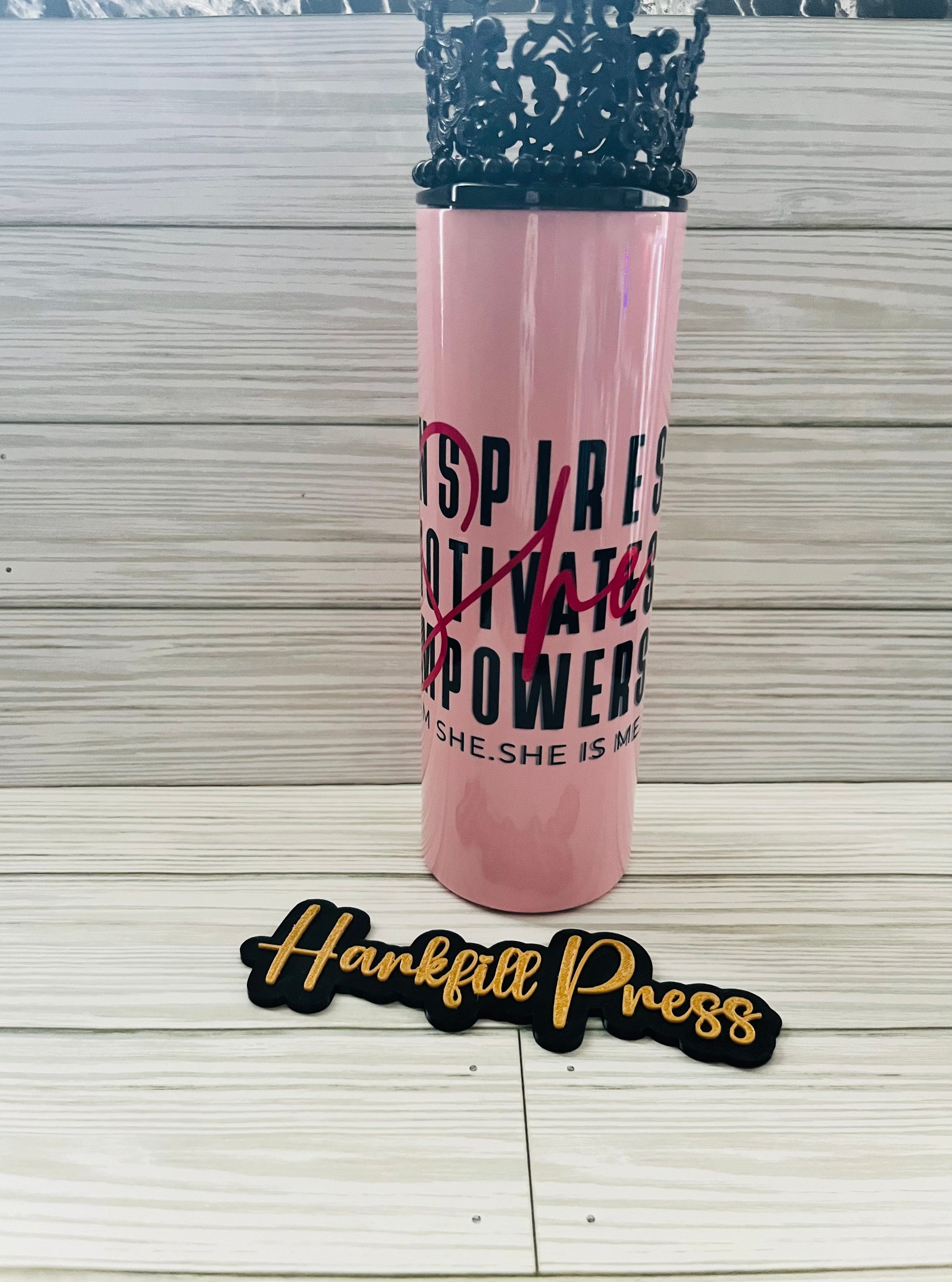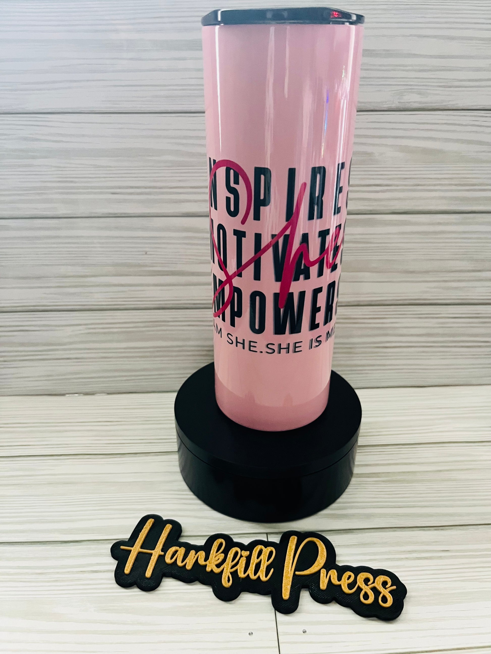 ✨ Sip in style with this bold and empowering pink tumbler! Designed with a sleek glossy finish, it features powerful words — Inspire, Motivate, Empower — because SHE is unstoppable. 💖 Perfect for daily use, this tumbler is both stylish and functional, keeping your drinks at the right temperature while reminding you to walk confidently in who you are.